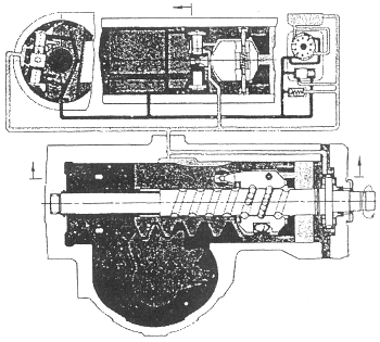 1 — корпус; 2 — поршень; 3 — шпиндель; 4 — червяк -