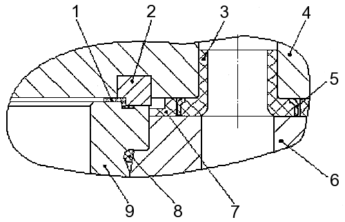 Для уплотнения перепускных каналов охлаждающей жидкости в отверстия днища головки установлены уплотнительные кольца 8 из силиконовой резины.