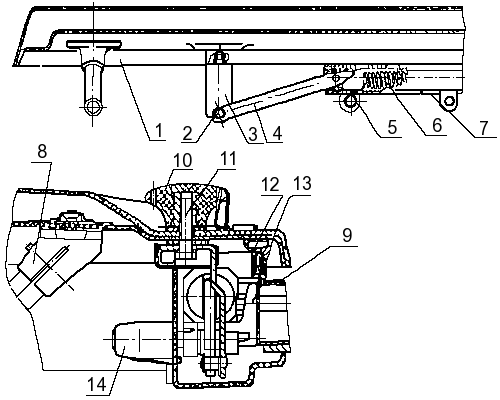 открывания люка; 7 — корпус механизма открывания люка; 8 — ручка подъема люка; 9