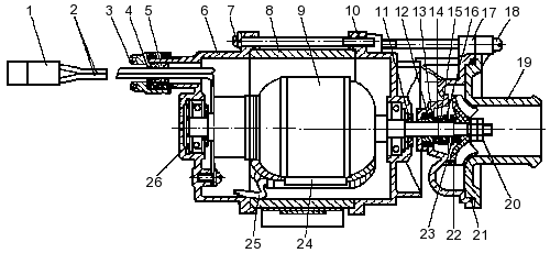 Электронасос предназначен для работы в комплекте с подогревателем и состоит из электродвигателя постоянного тока двухпроводного исполнения и центробежного насоса.