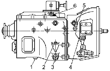 пробка сливная с магнитом; 4 — пресс-масленка; 5 — пресс-масленка выжимного