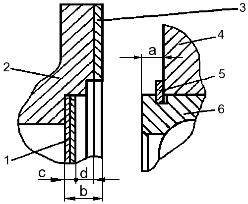 Для крышек первичного и вторичного валов коробки передач положить на привалочную поверхность крышки 2 уплотнительную прокладку 3, замерить с точностью 0,05 мм размер b, определить необходимую суммарную толщину с регулировочных прокладок 1, которая должна быть меньше разности (b - а) на (0,2-0,4) мм. Подобрав нужное количество регулировочных прокладок, установить крышку.