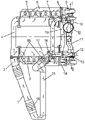 16 — патрубок отводящий; 17 — коллектор впускной правый; 18 — рукава 100×112; 19