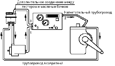 - установить для проверки утечки масла рулевого механизма дополнительный возвратный (сливной) трубопровод между тестером и масляным бачком;