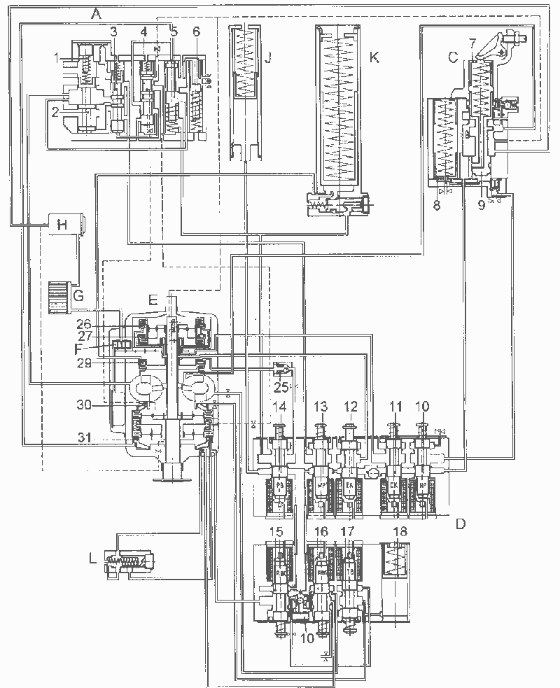 Рисунок 268 — Схема гидроуправления ГМП DIWA.3E