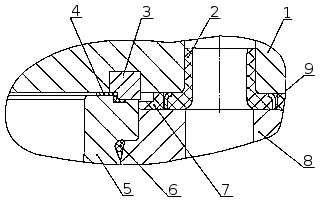 Газовый стык: 1 — головка цилиндра; 2 — кольцо уплотнительное перепуска охлаждающей жидкости; 3 — кольцо газового стыка; 4 — прокладка-заполнитель; 5 — гильза цилиндра; 6 — кольцо уплотнительное; 7 — прокладка уплотнительная; 8 — блок цилиндров; 9 — экран.