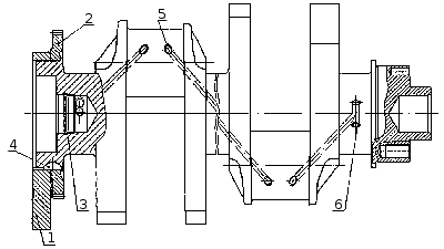 заглушка; 4 — шпонка; 5 — отверстия подвода масла к шатунным шейкам; 6 —