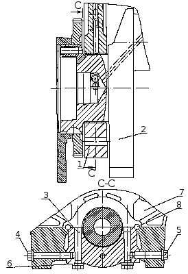 Крышки коренных подшипников (рисунок 11) изготовлены из высокопрочного чугуна. Крепление крышек осуществляется с помощью вертикальных и горизонтальных стяжных болтов 3, 4, 5, которые затягиваются по определенной схеме с регламентированным моментом (приложение А).