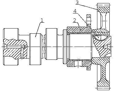 Распределительный вал: 1 — распределительный вал; 2 — корпус подшипника; 3 — шестерня; 4 — шпонка.