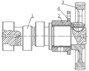 Рисунок 20. Распределительный вал: 1 — распределительный вал; 2 — корпус подшипника; 3 — шестерня; 4 — шпонка.