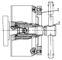 Снятие муфты приспособлением: 1 — ключ; 2 —