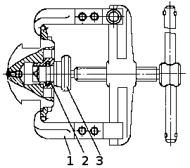 Для снятия шестерни привода масляного насоса и переднего противовеса коленчатого вала (рис. Снятие шестерни и заднего противовеса коленвала) на наконечник 3 установите наконечник 2 и снимите шестерню аналогично снятию шестерни коленчатого вала;