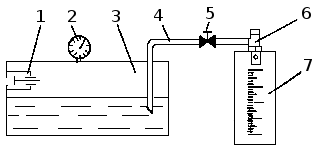 Схема установки для проверки пропускной способности свечей ЭФУ: 1 — клапан; 2 — манометр; 3 — ресивер; 4 — топливопровод; 5 — вентиль запорный; 6 — свеча факельная; 7 — цилиндр мерный с ценой делений 0,1 - 0,2 см3.
